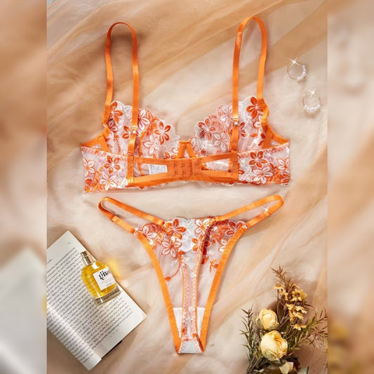 フローラル刺繍ランジェリーセット エレガント&セクシーインティメイトウェア