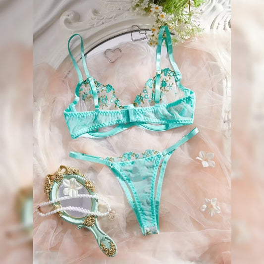 フローラル刺繍ランジェリーセット エレガント&セクシーインティメイトウェア