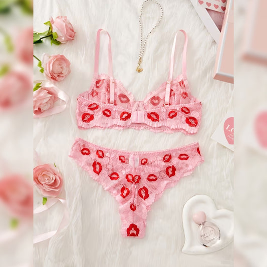 刺繍ブラ&トライアングルパンティー セクシーランジェリーセット