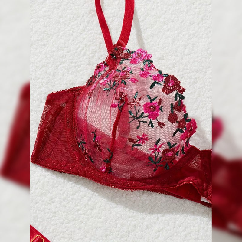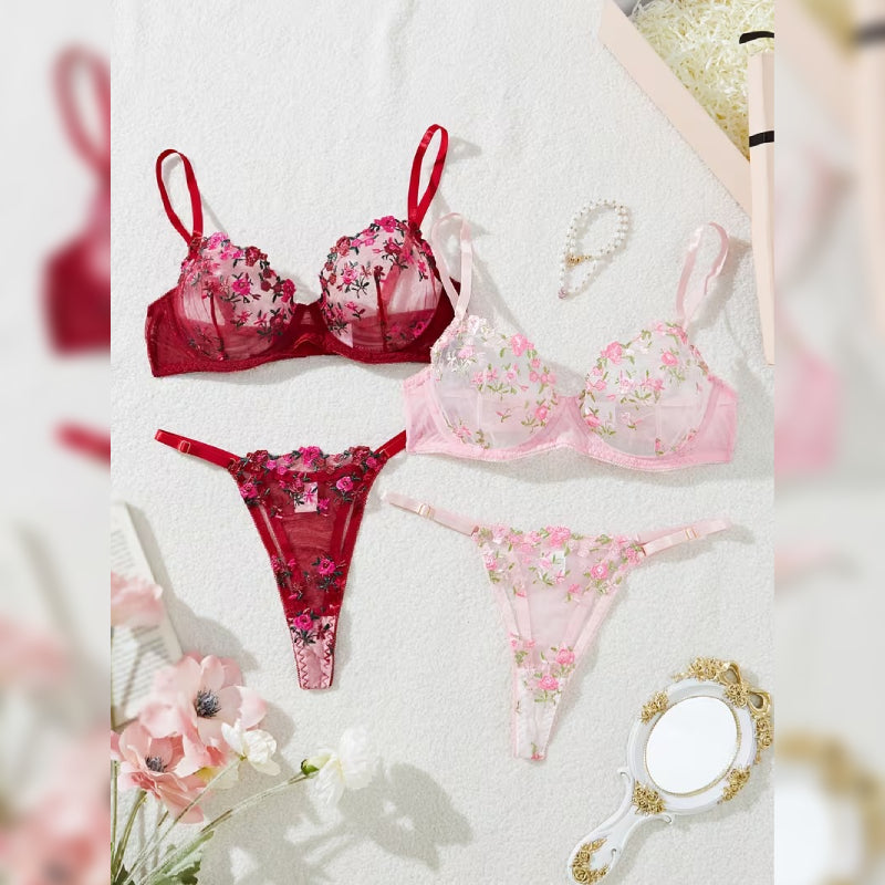 大人の魅力を引き立てる、レッドとピンクの2カラーランジェリーセット。