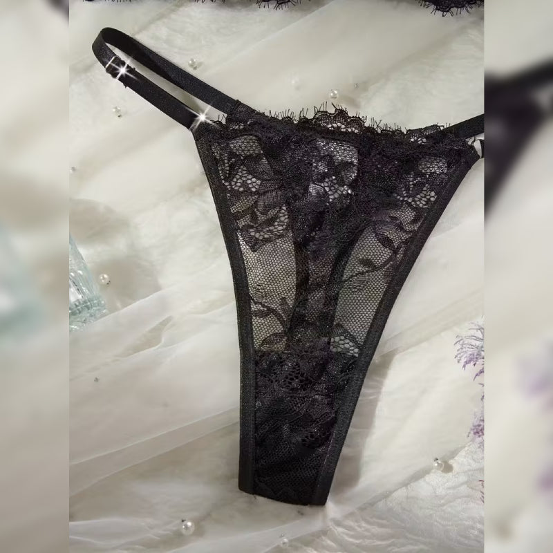 繊細なアイラッシュレースが女性らしさを際立たせる、上品でセクシーなランジェリーセット。なめらかなポリアミド素材を使用し、軽やかで柔らかい肌触りが特徴です。程よいフィット感と伸縮性があり、身体にやさしく沿うデザインで快適な着用感を実現。透け感を抑えつつもレーストリムが華やかに印象づけ、特別な夜やロマンチックなシーンに最適です。寝室ウェアやデートナイトにもおすすめの、大人のためのエレガントな下着です。