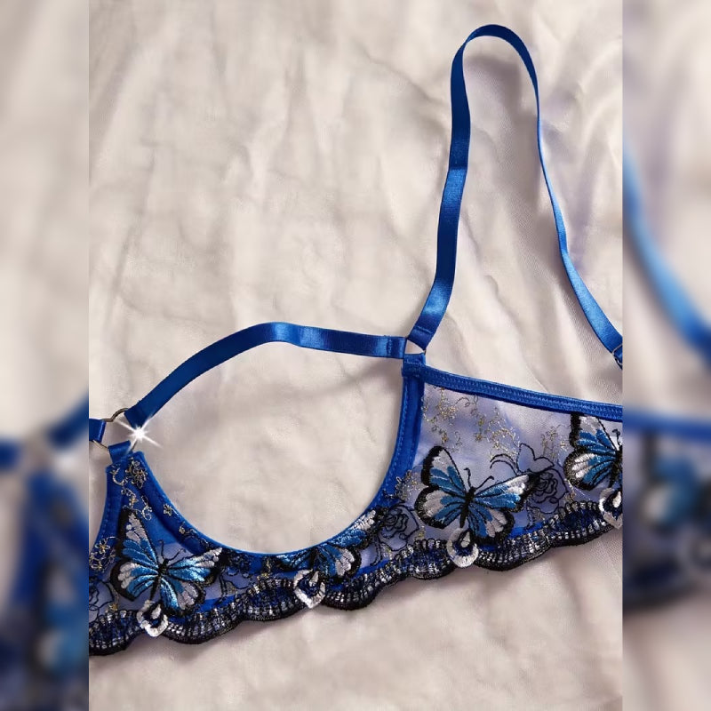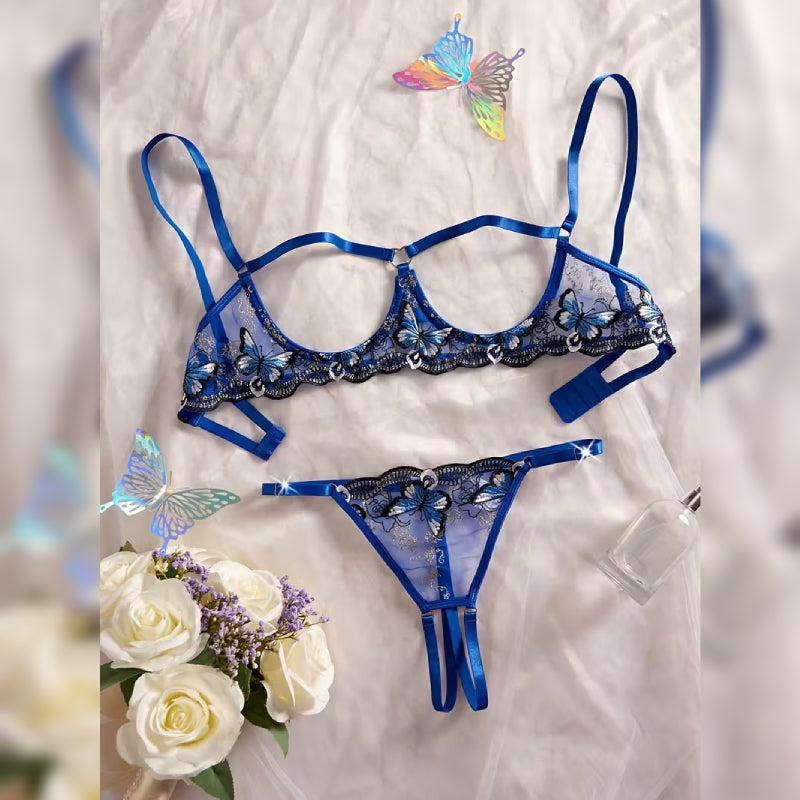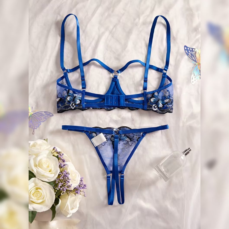 上品なレース刺繍が施された、女性らしさを引き立てるセクシーランジェリーセット。