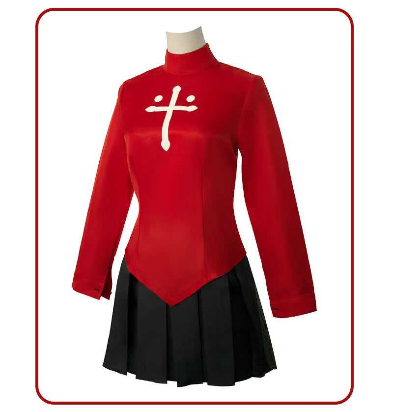 制服風デザインをベースにしたトップスとスカートのコスプレコスチュームセット。すっきりとしたシルエットに加え、ストッキングやヘアアクセなどが付属し、統一感のあるスタイルを演出します。上下セパレート構造で扱いやすく、バランスの取れたコーディネートが可能です。ポリエステル素材を使用したコスチュームです。