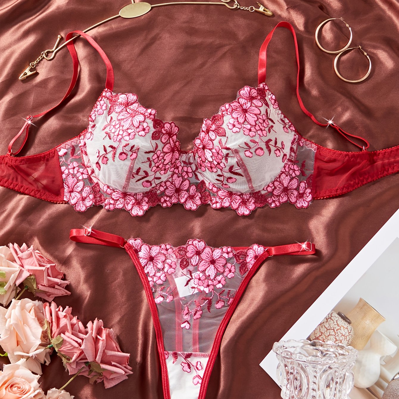 刺繍レースブラ&ショーツ セクシーランジェリーセット