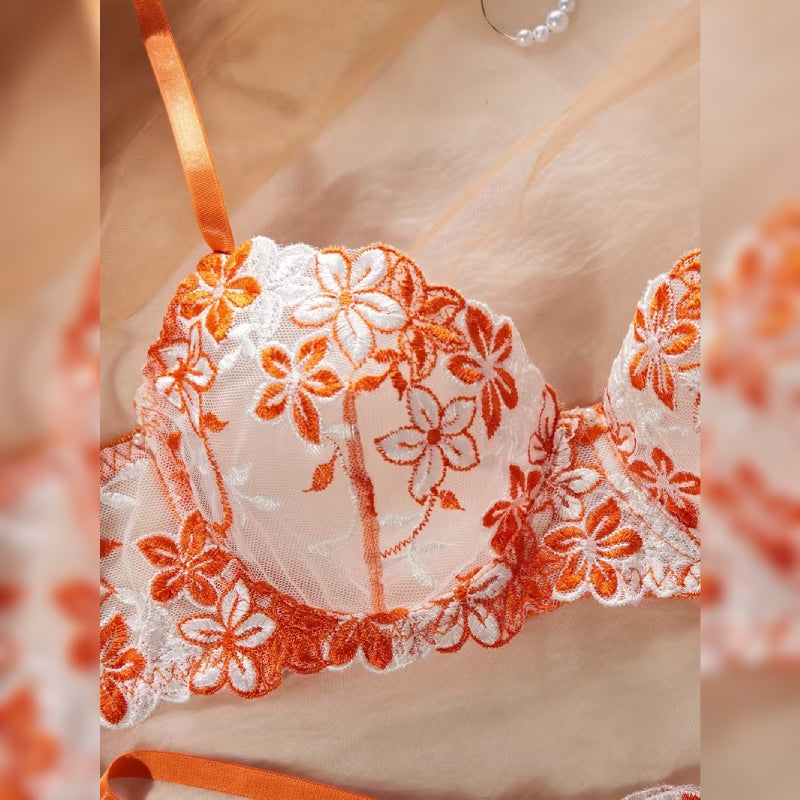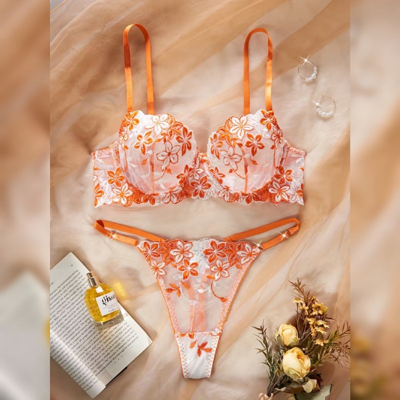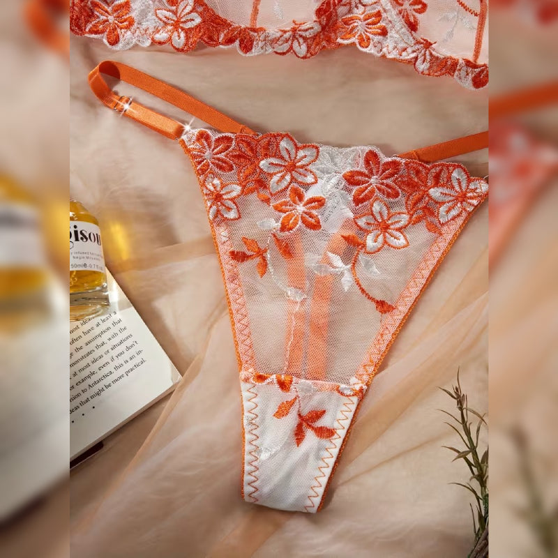 エレガントな花柄プリントが魅力的な、セクシーランジェリーセット。