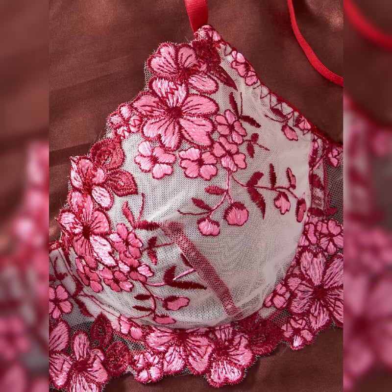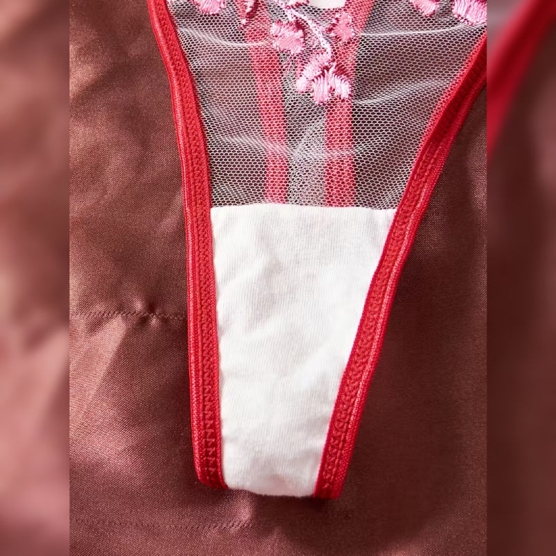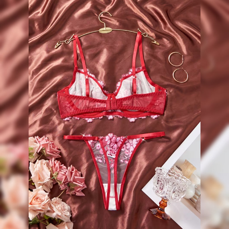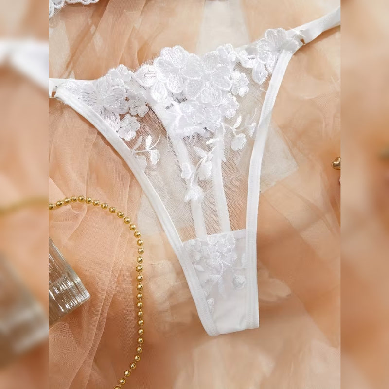 繊細な刺繍レースがフェミニンな印象を与える、上品でセクシーなランジェリーセット。軽やかな刺繍メッシュ素材を使用し、肌に心地よくフィット。透け感を抑えたデザインながら、刺繍の立体感が美しい陰影を生み出します。柔らかな伸縮性のある生地が快適な着心地を実現し、特別な夜にぴったりの一着。バレンタインデーやロマンチックなシーンで、上品な色気を演出します。