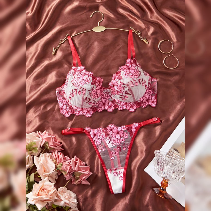 刺繍レースブラ&ショーツ セクシーランジェリーセット