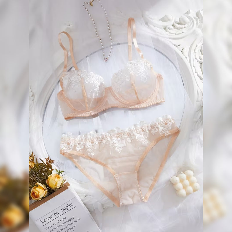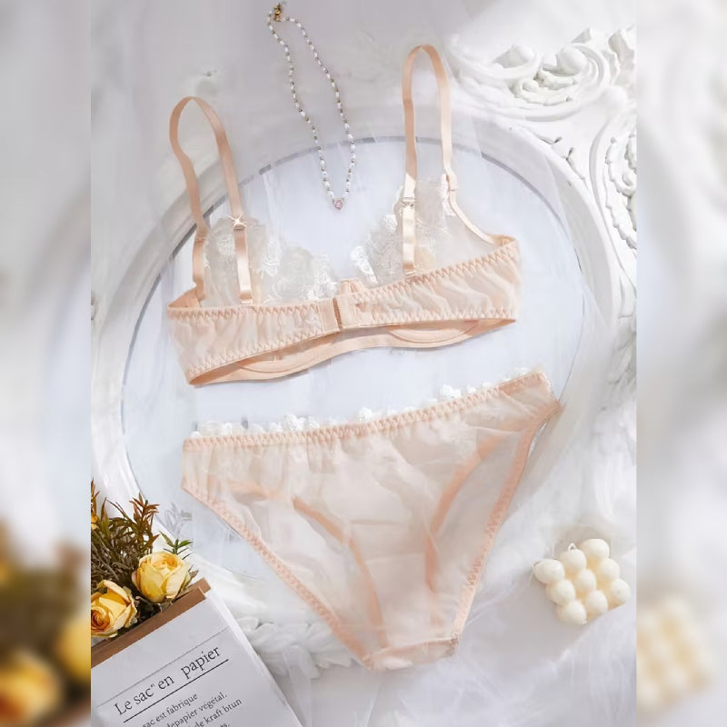 刺繍ブラ&トライアングルパンティー セクシーランジェリーセット