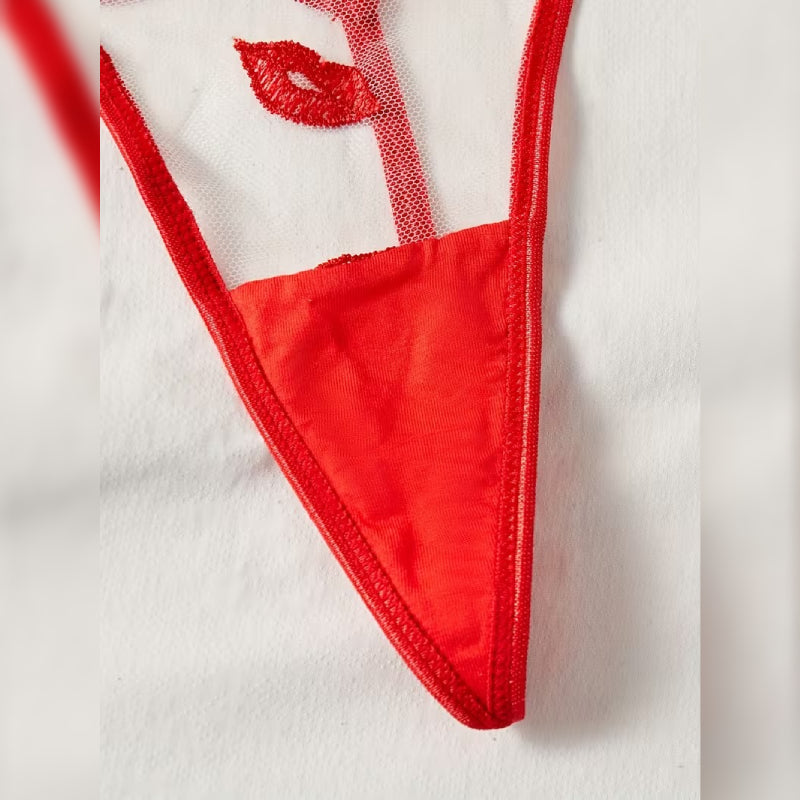 唇のモチーフが遊び心を感じさせる、刺繍入りセクシーランジェリーセット。Tバックとブラがセットになっており、刺激的で挑発的なデザインが印象的です。柔らかく伸縮性のあるポリエステル×エラスタン素材を使用し、肌に優しく快適なフィット感を実現。セミシアーな透け感がボディラインを美しく引き立て、寝室での特別なひとときやデートシーンにもぴったりです。手洗い推奨で、長く美しさを保てます。