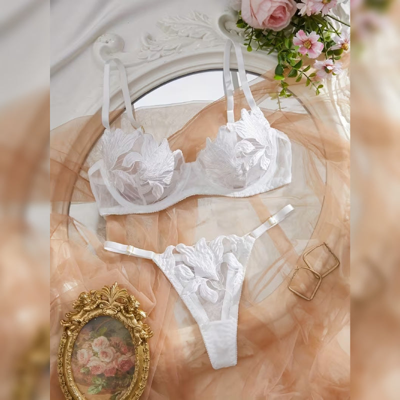フローラル刺繍ランジェリーセット エレガント&セクシーインティメイトウェア