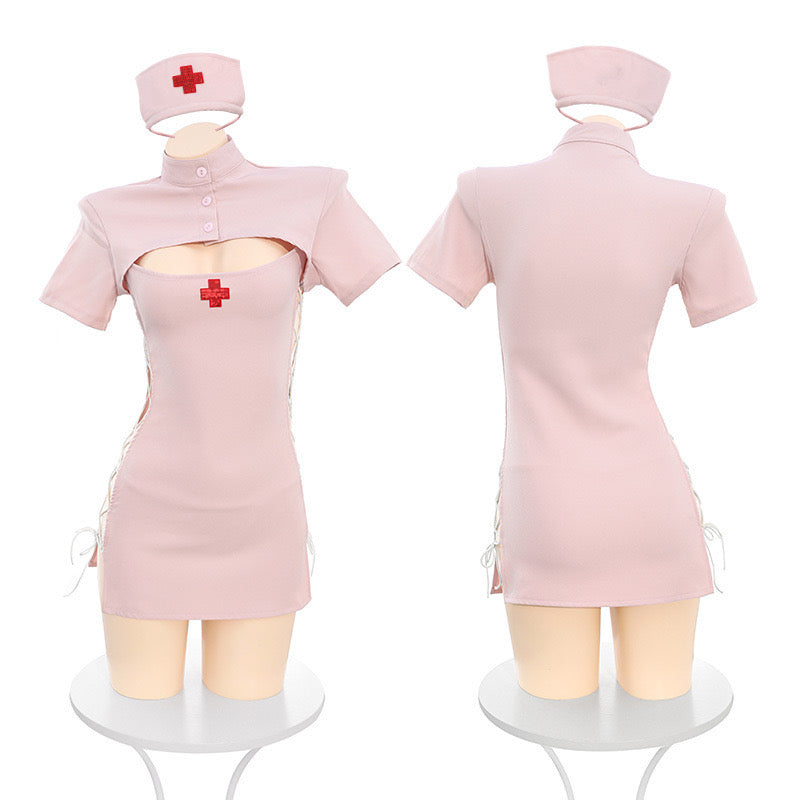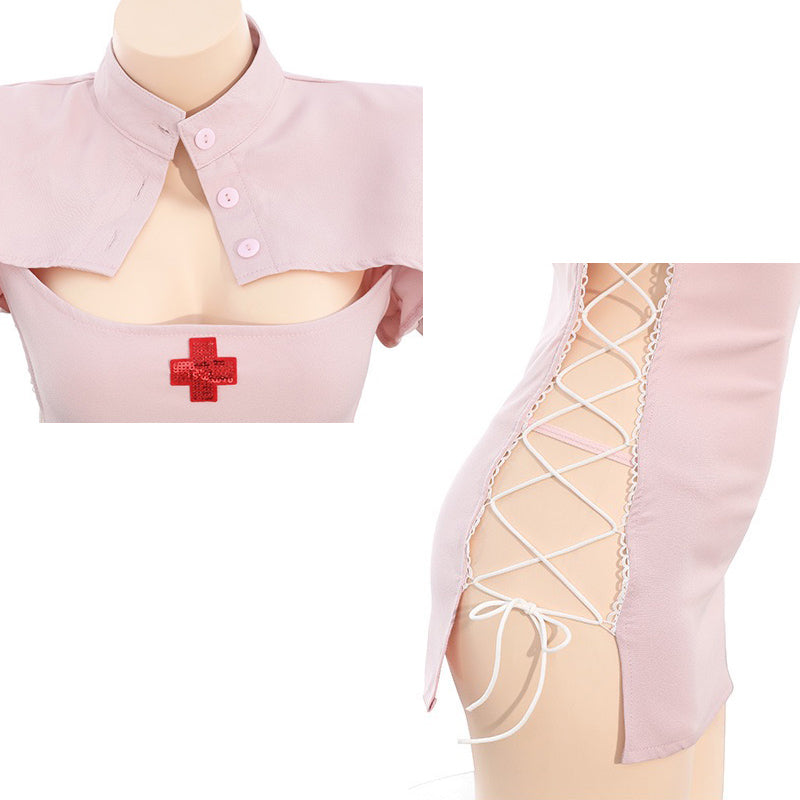 サイド編み上げピンクナース コスプレ衣装セット