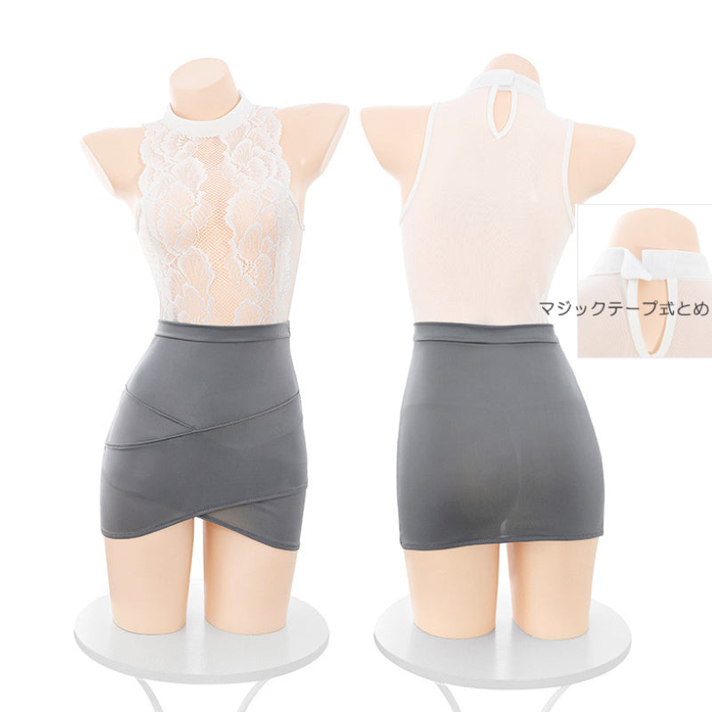 白×グレーの透け感が艶めく美人教師風セクシーOLコスチューム