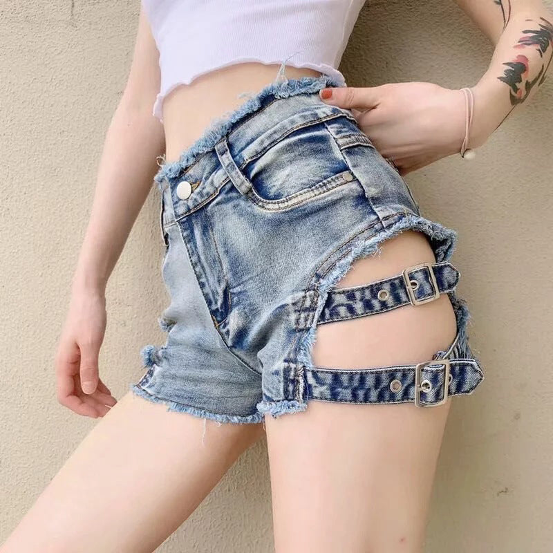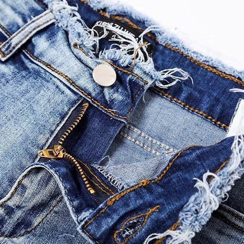 サイドに2本のベルトデザインが施されたお洒落なデニムショートパンツ。シンプルながらも個性的なスタイルで、カジュアルからちょっとしたお出かけまで幅広く活躍します。ヒップ側にはポケットがあり、実用性も兼ね備えています。やや厚めのデニム生地で耐久性があり、長くご愛用いただけます。