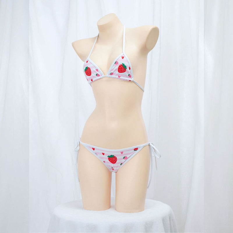イチゴ柄スクール水着風ブラ&ショーツ セクシーコスプレ