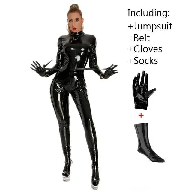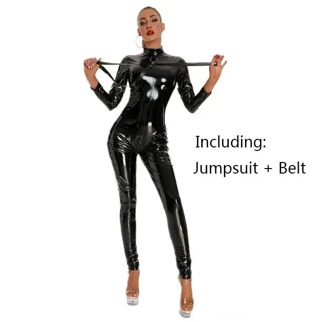 PUレザー調×ジップデザインのボディスーツジャンプスーツ